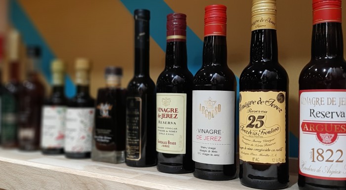 Varias elaboraciones con productos de la zona nos demuestran el potencial que adquieren los platos junto a estos especiales, a la vez que tradicionales, vinagres. El valor de los productos de la D.O.P. que garantiza calidad, autenticidad y la tradición de esta región del sur peninsular son los protagonistas. Vinagres que aportan acidez a los platos, los matices de las viejas botas con diferentes intensidades, donde productos como el atún rojo salvaje o las ostras "amelie" se ven elevadas y potenciadas por amables sabores. Salsas que evocan esos vinos de crianza biológica que tanto caracterizan a la región con un toque muy particular.