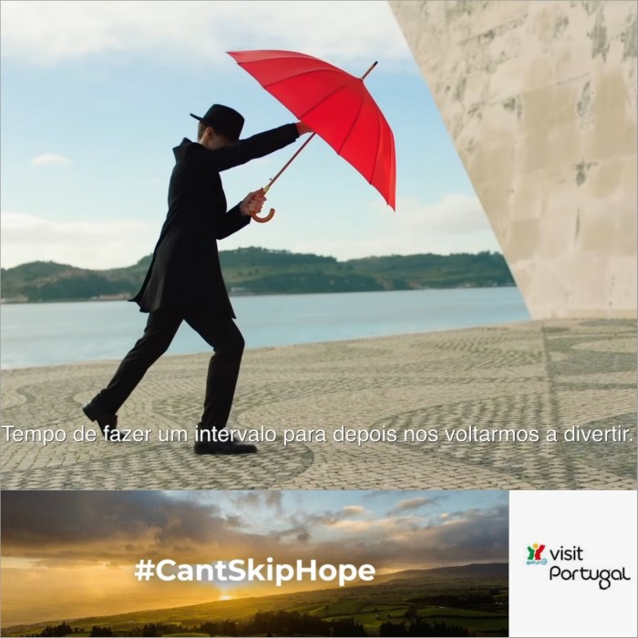 Turismo de Portugal ha lanzado junto con su correspondiente "estado de emergencia Covid_19" una campaña a la inversa, mudando su hastag "no deje de visitar Portugal" (#CantSkipPortugal) por "no deje de tener esperanza" (#CantSkipHope).