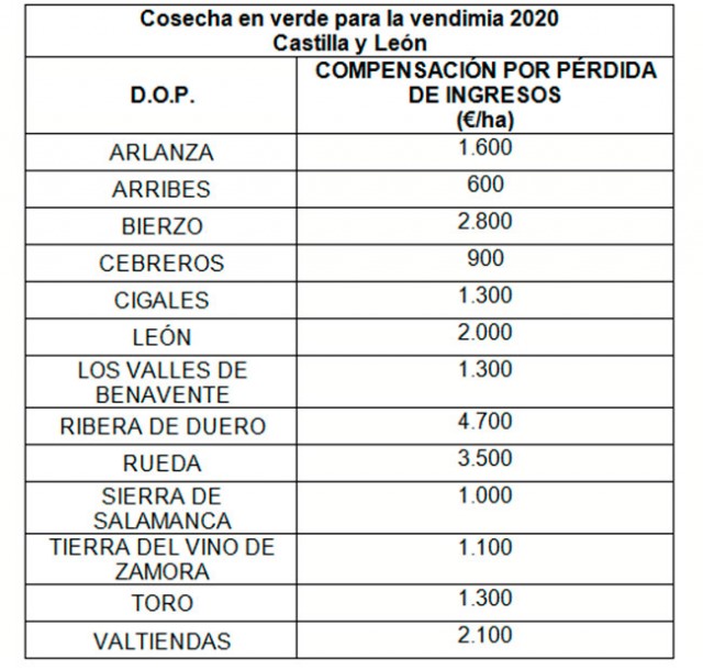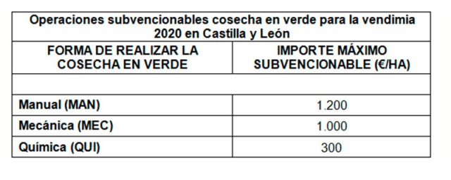 Está dirigida a viticultores inscritos en alguna DOP de Castilla y León, para aquellas parcelas de viñedo registradas en esa DOP que se destinen a la producción de uva para vinificación. Además, solo serán subvencionables las superficies de viñedo plantadas con anterioridad al 1 de agosto de 2016. Para llevarla a cabo, el viticultor recibirá una compensación por la pérdida de ingresos que supone la cosecha en verde, así como por los costes de destrucción de la misma, que en ambos casos será del 60 % de los importes máximos establecidos en la Orden.
