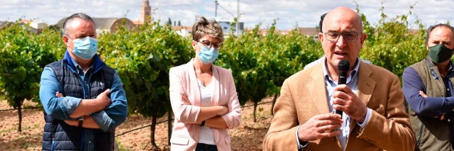Imagen superior: El consejero de Agricultura visitaba esta mañana los viñedos de la DO Rueda.