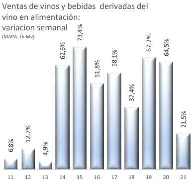 Veníamos de un aumento estimado del consumo de vino en España notable en 2019: 9,7% interanual a diciembre hasta los 1.100 millones de litros según datos del INFOVI. Pero nos encontramos con una disminución muy relevante en los primeros meses de 2020 que, por la coincidencia de fechas, puede atribuirse a la COVID, cuyo forzado confinamiento se inició el 14 de marzo. Particularmente en los meses de marzo y de abril, donde la reducción del consumo estimado de vino en España es respectivamente del 24% y del 31%.