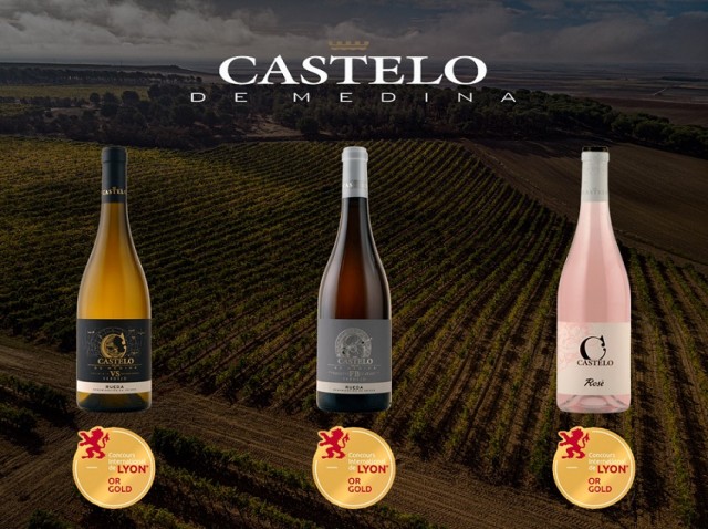 Los vinos de la bodega, situada en Villaverde de Medina (Valladolid). que han obtenido una Medalla de Oro en el Concours International de Lyon han sido el Castelo de Medina Verdejo Vendimia Seleccionada 2018, el Castelo de Medina Fermentado en Barrica 2018 y el Castelo Rosé 2019.