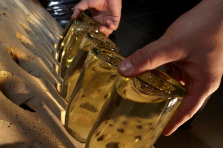 En el proceso final del etiquetado nuestras etiquetas son de metal bañado en oro, y ponemos cada una de ellas manualmente y todas las botellas van acompañadas de un certificado con su número de serie y el nombre de la persona que lo recibe.