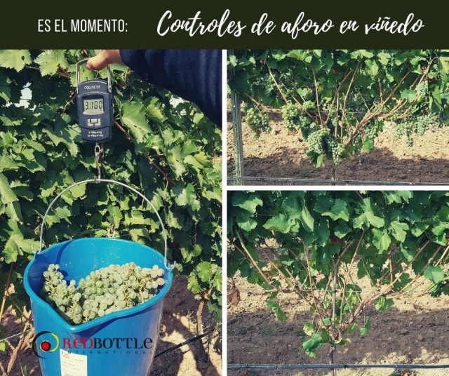 La estimación de producción o aforo de parcelas consiste en realizar un muestreo pesando racimos y contando los mismos de cepas representativas de una misma parcela. Se puede realizar vendimiando cepas completas, para ello se pesa la uva vendimiada y número de racimos de cada cepa elegida para obtener el peso medio de racimo y carga de uva por cepa, o pesando racimos (grandes, medianos y pequeños) y "haciendo al ojo" para estimar el peso de racimos y contando los mismos de un número representativo de cepas para calcular la producción de cada tablar.