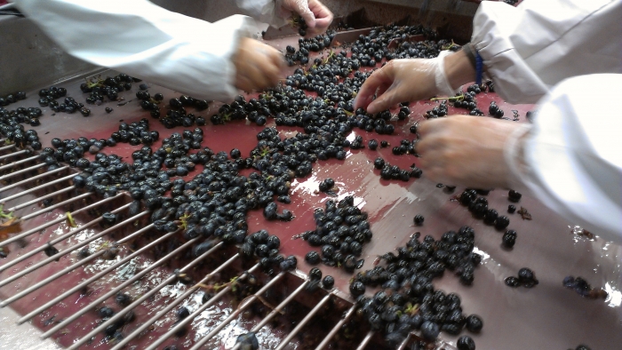 Cuando la uva llega a la bodega es clasificada en función de distintos parámetros mediante colores, destinando cada uno de ellos a la elaboración de un tipo de vino concreto. "Contamos con mesas de selección manual y máquina de selección por láser (visor artificial). Y la uva es trasladada a los depósitos de fermentación mediante ORY's y puentes-grúa, siendo este traslado por gravedad".