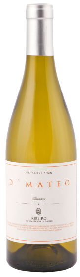 D´ Mateo Treixadura es un vino joven elaborado mono-varietalmente con producción propia de la variedad Treixadura. En fase visual es de color amarillo pajizo con reflejos verdosos y brillantes. De aroma potente, elegante, fino y equilibrado, rico en matices marcados por su procedencia varietal. En boca es sabroso, goloso, e intenso. Con post gusto largo y elegante. D´ Mateo está elaborado con la selección de uva procedente de bancales situados en la comarca del Avia. Ésta es vendimiada manualmente, es seleccionada por su maduración y llevada a bodega para su inmediato prensado, de esta forma conseguimos que la uva llegue en su mejor estado de conservación impidiendo la oxidación. Gracias a esto se conservan todas sus cualidades organolépticas. La fermentación se efectúa a temperatura controlada, tras su elaboración el vino se conserva en depósitos de acero a la espera de las bajas temperaturas del frio invierno en las comarcas del Ribeiro, esto proporciona un ligero desfangado y clareado de forma totalmente natural. De la variedad Treixadura obtenemos 7000 unidades, Grado Alcohólico 12.8º D´ Mateo Treixadura Tipo de Vino: BLANCO JOVEN Variedades: 98% TREIXADURA, 2% Loureira. Indicación Geográfica: D.O RIBEIRO.