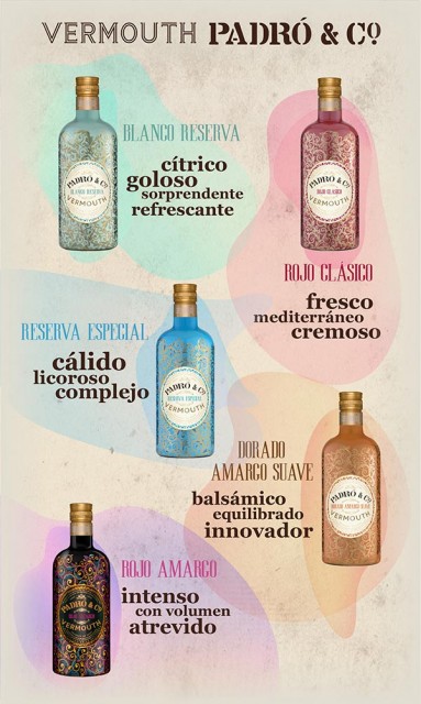 La amplia gama de Padró & Co. nos permite encontrar qué vermut acompaña mejor cada momento. Si os gusta que tengan un punto de dulzura probad nuestro Rojo Clásico, que en boca resulta cremoso y fresco con un toque de hierbas mediterráneas, o el Blanco Reserva, que tiene un toque cítrico y refrescante. Si buscáis un carácter más amargo y una complejidad especial inclinaros por el Reserva Especial, donde notaréis el gusto cálido de su largo envejecimiento. Con el Rojo Amargo, fruto de una doble infusión, vuestro paladar disfrutará de una agradable mezcla entre la frescura de la naranja y la amargura de la quina. En nuestro Dorado Amargo Suave notaréis el equilibrio perfecto entre el dulce y el amargo.