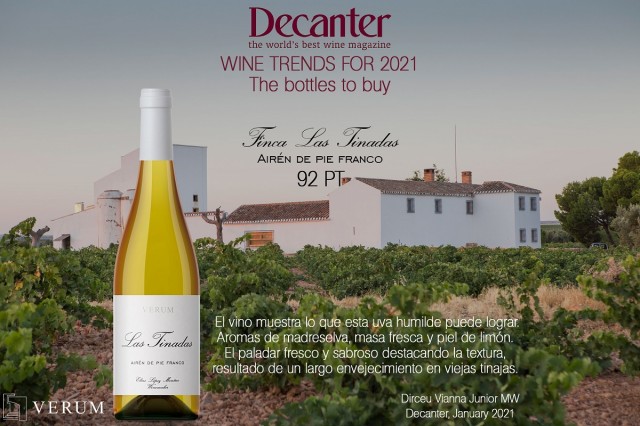Verum las tinadas Airén es el recomendado en su TOP 10 tendencias de vino que comprar en 2021 otorgando 92 puntos a este vino blanco tan singular y exclusivo con este comentario de cata: "Este vino muestra lo que esta uva humilde puede lograr. Aromas de madreselva, masa fresca y piel de limón. El paladar fresco y sabroso destacando la textura, resultado de un largo envejecimiento en viejas ánforas de arcilla".