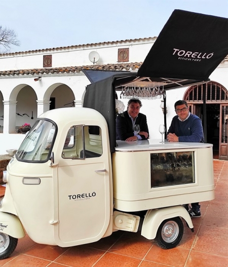 Se trata de un vehículo de tres ruedas con cabina y parte posterior adaptada, convertida en elegante wine-bar, con barra y con cubitera incorporada, para poder catar, al aire libre, los vinos DO Penedès y espumosos Corpinnat de Torelló.