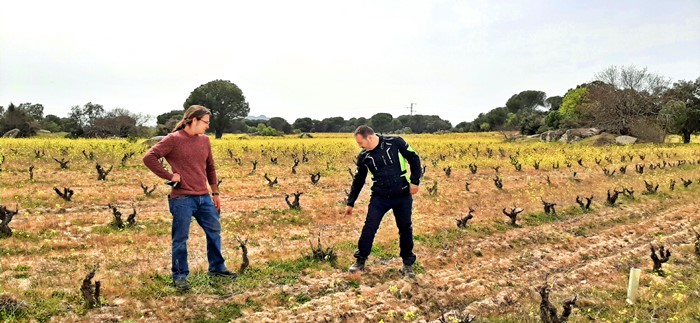 Dos de las variedades más representativas de la zona, Garnacha y Albillo Real, son cultivadas en un marco incomparable. La Sierra de Gredos al fondo con los restos de las últimas nevadas asoma entre las copas de los pinos, contemplando un viñedo recién podado con los primeros atisbos primaverales en forma de flores que cubren la cubierta vegetal entre cepas desnudas. Pinos, jaras y tomillos fueron testigos de una viticultura que antaño servía de motor económico en estos montes.