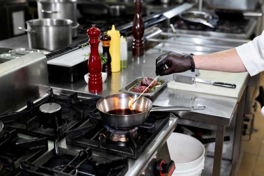 Mediante el flambeado se prende fuego al vino para consumir antes el alcohol y dar un sabor más caramelizado a la reducción.