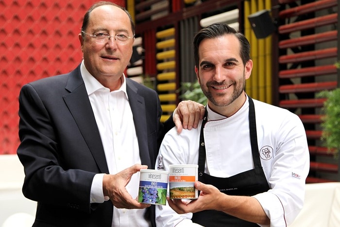 Para mí es un binomio inseparable y nuestra experiencia lo avala. Gracias a esta unión nació, por ejemplo, VINESENTI después de más de cuatro años de investigación conjunta con uno de los chef más prestigiosos, reconocidos e innovadores de nuestro país como es Mario Sandoval. Nuestro empeño por innovar en ambos sectores y por aprovechar una excelente materia prima nos unió para trabajar con la uva como base y descubrir nuevas fórmulas que pueden marcar un antes y después en la alta cocina. Se trata de un ingrediente que confiere a los alimentos y platos de cocina aspectos organolépticos diferenciadores y una alta dosis de antioxidantes naturales.