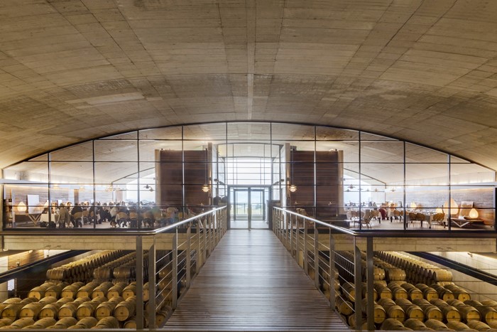 El edificio, adaptado perfectamente a la topografía existente, permite desarrollar todo el proceso de elaboración del vino de manera armoniosa bajo la superficie, a través de sus 7 plantas subterráneas. Un lugar donde se puede disfrutar del enoturismo en plena vendimia, contemplando desde cualquier punto y de forma didáctica, cómo se desarrolla el proceso de elaboración del vino en plena vendimia.
