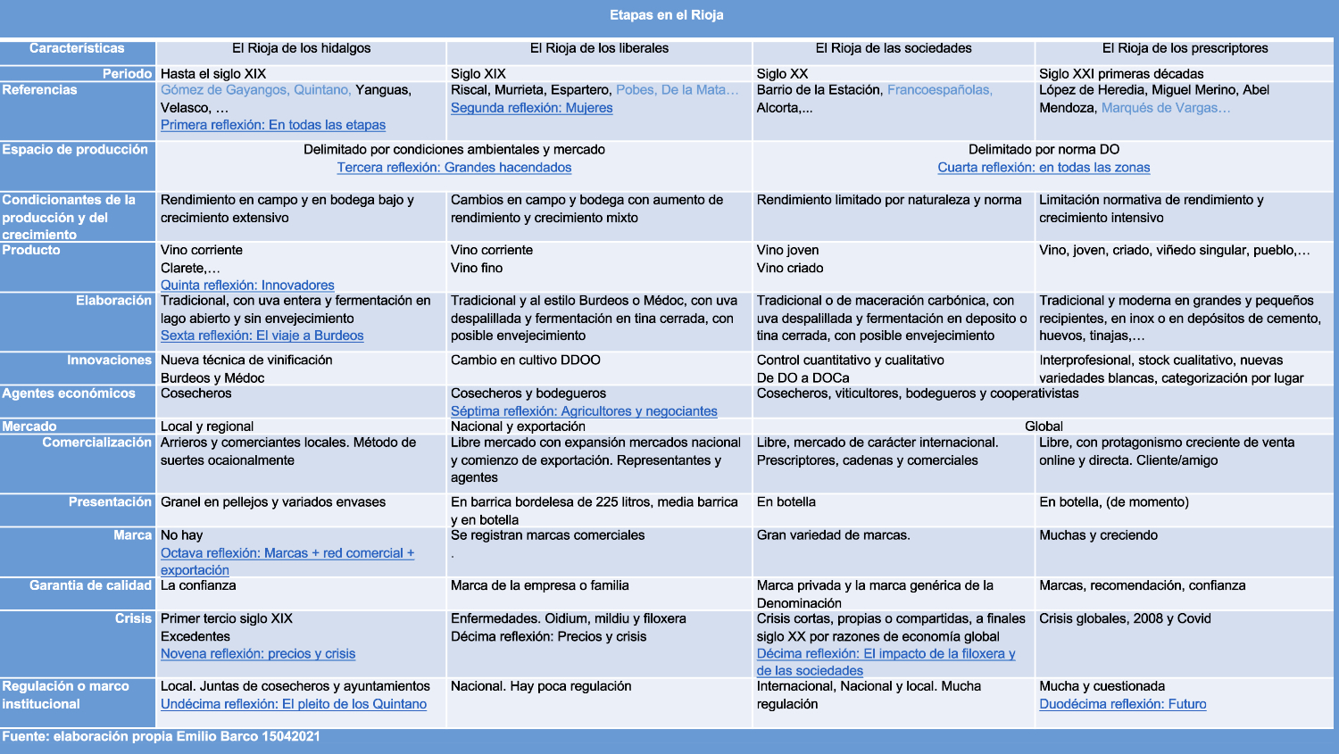 Los autores han estudiado también los grandes cambios que tuvieron lugar durante el siglo XIX en este sector, en el campo, en la bodega y en el comercio, según los documentos de la familia De Pobes, una de las propiedades vitivinícolas más importantes de Rioja. Además, para finalizar, el libro investiga la relación de la familia De la Mata con el viñedo y el vino.