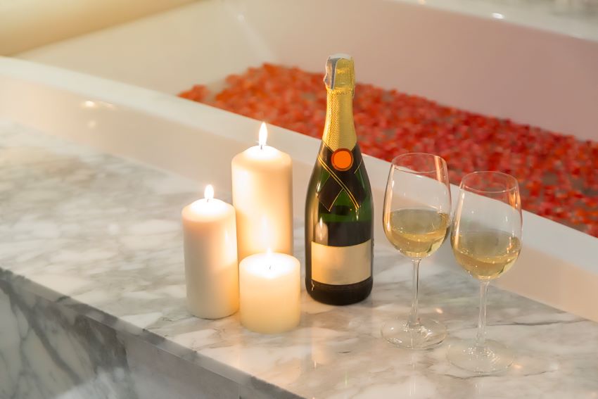 Una versión más elaborada, añade al agua con champagne otros elementos como pétalos de rosa y miel si lo que quieres es atraer al amor.