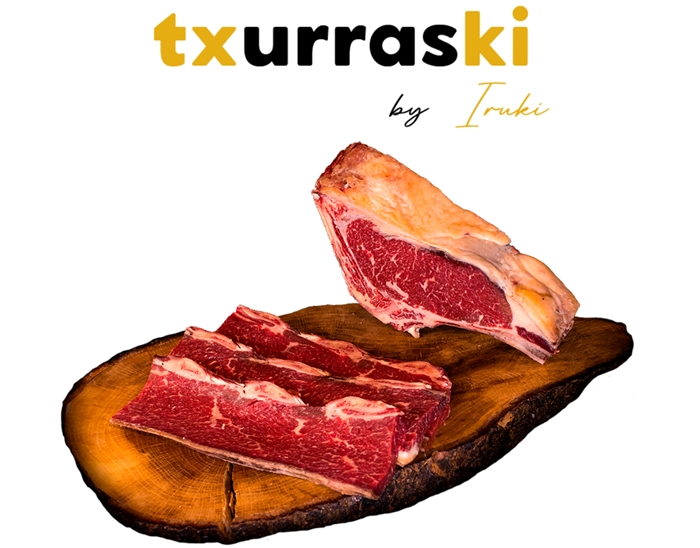Iruki ha logrado un corte muy especial a un precio asequible haciendo finos cortes transversales a chuleteros madurados cuidadosamente seleccionados. El txurraski hace relucir las maravillosas cualidades culinarias de la carne de vacuno mayor pues tiene menos grasa, más carne, más ternura y mucho más sabor.