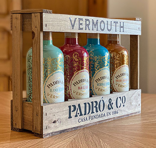 En primavera del 2016 hay que dar a conocer los cuatro Padró & Co. clásicos. Tenemos que pensar en una caja para presentarlos que sea elegante y a la vez práctica. Miramos hacia atrás y nos inspiramos en las cajas de vinos de la bodega que se utilizaban en los años 1960 cuando las botellas eran retornables. Se trata un vínculo entre la tradición de nuestra historia de más de 130 años que nos da tanta solidez y la innovación que representan los vermuts Padró & Co.