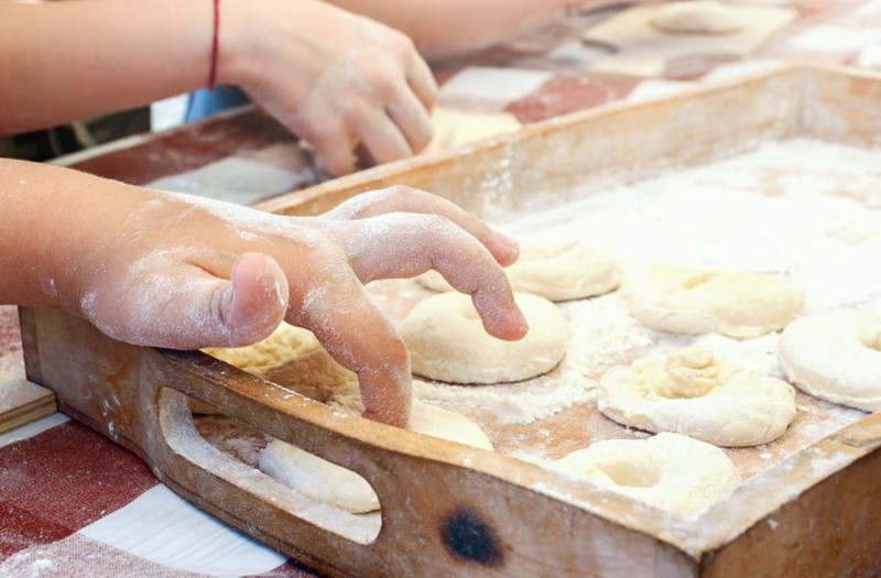 Amasa las bolitas para darles forma cilíndrica y une los extremos para formar el rosco. Es una masa fácil de trabajar, por lo que puedes preparar esta receta con niños.