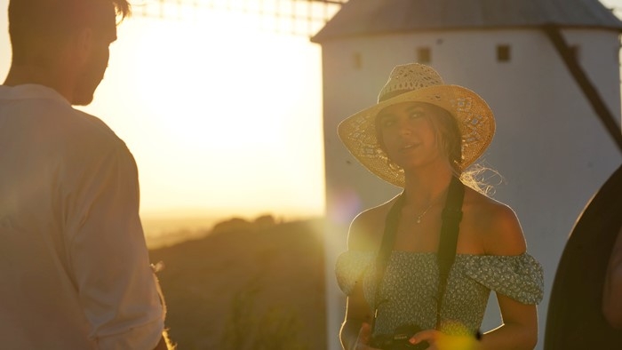 Una joven pasea entre viñedos, bajo el rigor de un sol estival manchego. Lo hace a pedales, alegre, jovial para terminar preguntando por la musa Dulcinea. De El Toboso a los molinos de viento, la protagonista del nuevo spot de los vinos de La Mancha acaba su periplo con sonrojo, encontrando la respuesta que un apuesto y neoquijotesco molinero le propina con galantería, mientras brindan con un vino DO La Mancha en una preciosa puesta de sol entre gigantes de viento.