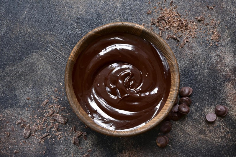 Pon en un bol el chocolate troceado. Calienta la nata y el vino y lleva a ebullición. Retira del fuego y vierte sobre el chocolate. Deja reposar durante 5 minutos y con ayuda de las varillas bate hasta que quede una crema brillante y sedosa.