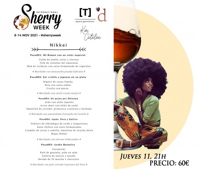 Kim Catalan, la chef del Espacio T nos propone un menú Nikkei en 5 pasos, que iran maridados y explicados con grandes vinos de Jerez por José Manuel Massé.