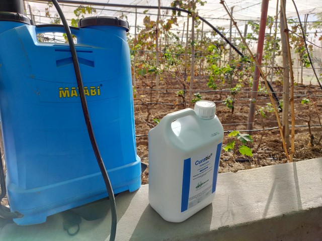 Turismo Rural Agüimes y la Agencia Desarrollo Rural fomentan entre el sector vitivinícola los tratamientos con polisulfuro de calcio que contribuyen a un mayor grado de sanidad vegetal de la viña.