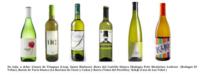 Uvas como la Merseguera, variedad reina de nuestra subzona del Alto Turia, que junto a la Malvasía y Macabeo más tradicionales del Valentino, y la autóctona y valenciana Tardana conocida también como Planta Nova, nos proporcionan unos vinos blancos frescos y afrutados, y de una exquisita acidez, muy apropiados para acompañar nuestros platos a base de mariscos, pescados y carnes blancas.