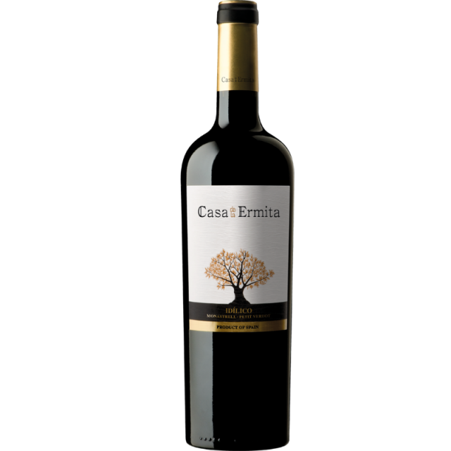 Casa de la Ermita Idílico, elaborado con uvas seleccionadas de Monastrell de viñas con más de setenta años y Petit Verdot de los viñedos que rodean la bodega a 700 metros de altitud, vendimiadas a mano y seleccionadas en el campo y en la bodega, con una crianza durante 13 meses en barricas de roble francés y americano de 225 litros.