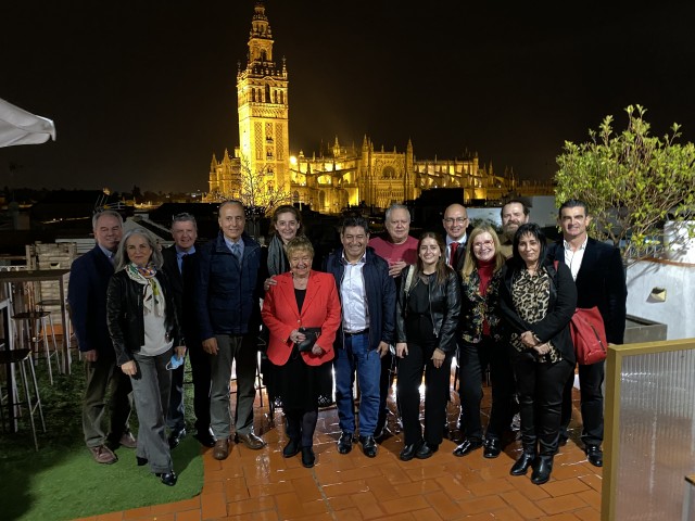 El presidente de la Diputación, Fernando Rodríguez Villalobos, ha mantenido un encuentro con la veintena de expertos del mundo del vino e influyentes críticos gastronómicos del ámbito regional y nacional que, durante la mañana de este jueves, 24 de marzo, han participado, como jurado, en la cata a ciegas de selección de los mejores vinos y licores de 2022, en el marco de la séptima edición del Premio de Vinos y Licores de la Provincia de Sevilla, que convoca la Diputación de Sevilla a través de Prodetur, y cuyo fallo se dará a conocer próximamente en un acto público. En el encuentro, Villalobos ha estado acompañado por la diputada de las áreas de Presidencia, Hacienda y Concertación, Trinidad Argota, y la vicepresidenta de Prodetur, Manuela Cabello.