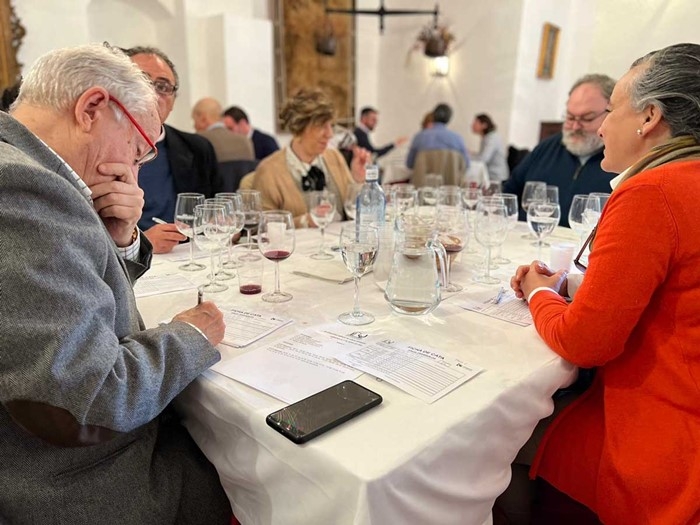 En el primer plano de la foto el crítico de vinos español José Peñín y la catadora portuguesa Filipa Melo de Vasconcelos.