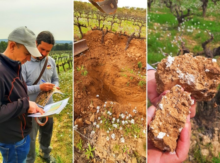 "Para definir el terroir es muy importante conocer los cuatro elementos que lo forman: el relieve, la geología, el clima y la biodiversidad", asegura Joaquín Cámara, director ejecutivo de Diagnoterra y encargado del proyecto. A principios de abril, Juvé & Camps inició el proyecto de estudio de suelos de la finca de Espiells abriendo 76 zanjas, de entre 1,5 y 2 metros de profundidad cada una, en función de la profundidad efectiva de las raíces; es decir, hasta donde llega el 80% del sistema radicular.