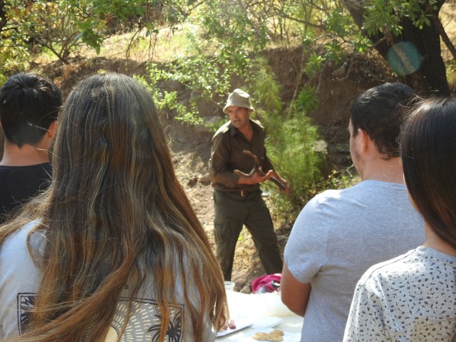 José Antonio López, personal de la Agencia de Desarrollo Rural Agüimes, nacido en el Barranco de Guayadeque, estuvo encargado de explicar los usos y el aprovechamiento tradicional de los almendros. Es la almendra, el almendro pues, un elemento presente en la memoria colectiva e histórica de los pueblos.