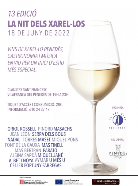 Uno de los eventos que abre el calendario vinícola de verano en el Penedès, La Nit dels Xarel·los (La Noche de los Xarel·los), celebrará una nueva edición el sábado 18 de junio de 19h a 23h en el Claustre de Sant Francesc de Vilafranca del Penedès. Este año el evento, organizado por el restaurante El Gat Blau con la colaboración de la DO Penedès, contará con un récord de bodegas participantes, hasta 20, y referencias vínicas, una cincuentena de vinos xarel·lo, muchos de ellos galardonados en los Premios Vinari y el Concurso Tastavins DO Penedès. La edición 2022 de La Nit dels Xarel·los también contará con una propuesta gastronómica ideada por El Gat Blau con la novedad de que habrá una propuesta de platos vegetarianos. El acto incluirá una exposición de esculturas de Ángel Camino, la actuación del grupo musical Apocadixie y un espacio audiovisual en el que adentrarse en la DO Penedès.