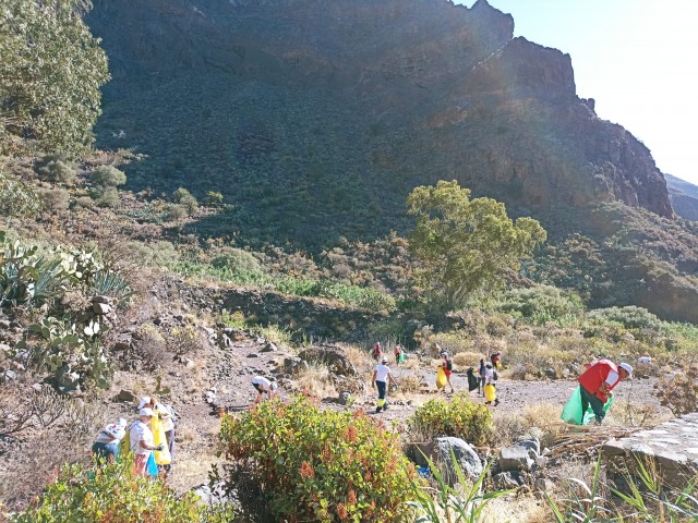 Agüimes y Cruz Roja Las Palmas se sumaron a la 6º edición de la campaña "1m2 contra la basuraleza", organizando una limpieza del Barranco de Guayadeque.