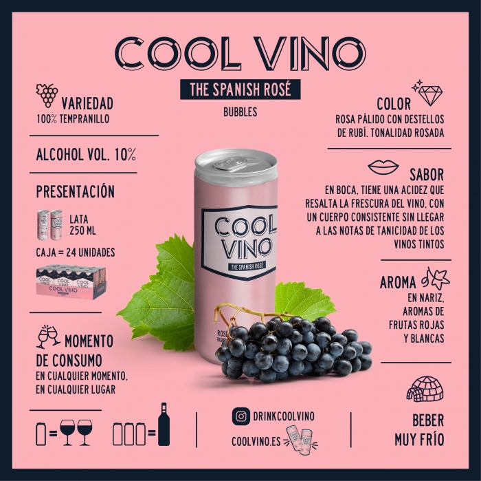 Cool Vino, es un rosé en lata con burbujas, 100% Tempranillo con un 10% de alcohol.