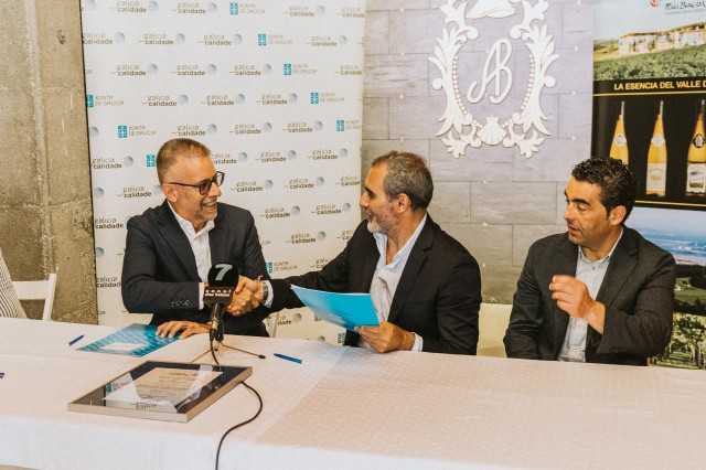 El certificado, otorgado por la Vicepresidencia primera y Consellería de Economía, Industria e Innovación, fue entregado en un acto en la propia bodega a Adolfo Picáns, director financiero de Granbazán. En la entrega y visita a la bodega también estuvieron presentes Diego Ríos, enólogo de Granbazán, y Cristina Dominguez, Export Manager.
