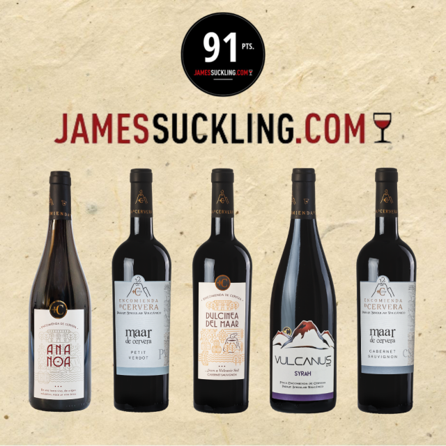 Los afortunados fueron nuestros Ananoa Syrah, Maar de Cervera Petit Verdot, Dulcinea del Maar Cabernet Sauvignon, Vulcanus Syrah y Maar de Cervera Cabernet Sauvignon, recibiendo 91 puntos cada uno.