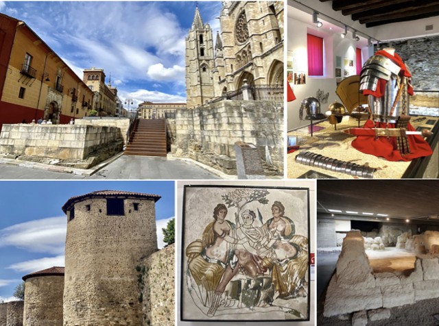 La Real Colegiata de San Isidoro forma parte del León romano pues ocupa la esquina noroeste del campamento de la Legio VII Gémina. Algunos autores consideran que la propia Basílica está situada sobre un tempo romano que pudo estar dedicado al dios Mitra. En el interior del Museo de San Isidoro se visitan parte de esos vestigios romanos. Así, podemos caminar sobre la muralla ubicada sobre los 'principia' de la primitiva muralla romana. También podemos ver los restos encontrados en las excavaciones: parte de un hipocausto, tégulas con el sello de la Legio VII, tuberías romanas y varias laudas con inscripciones, entre las que destacan la más antigua de la ciudad y la dedicada a Esculapio, dios de la medicina en la antigua Roma.