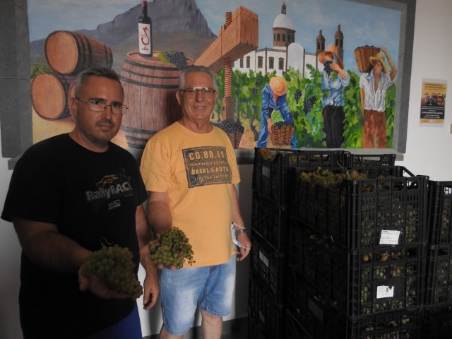 En esta primera jornada ha participado 8 viticultores/as, recolectándose 1112.40 kilos de uvas blancas (principalmente de las variedades Moscatel de Alejandría, Malvasía Volcánica y Listan Blanco).