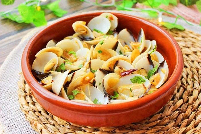 Este plato típico de la comida española, específicamente de la cocina gallega, es ideal para tomar en el aperitivo. Acompaña esta explosión de sabor con un Eresma Verdejo Vendimia Seleccionada 2021, de Bodegas Eresma. Este vino, de color amarillo pajizo con intensos matices verdosos, presenta en nariz aromas a heno e hinojo, dejando paso a notas de fruta blanca como la manzana. En boca es intenso y fresco, muy expresivo, perfecto para potenciar los sabores marinos y yodados de este bivalvo.