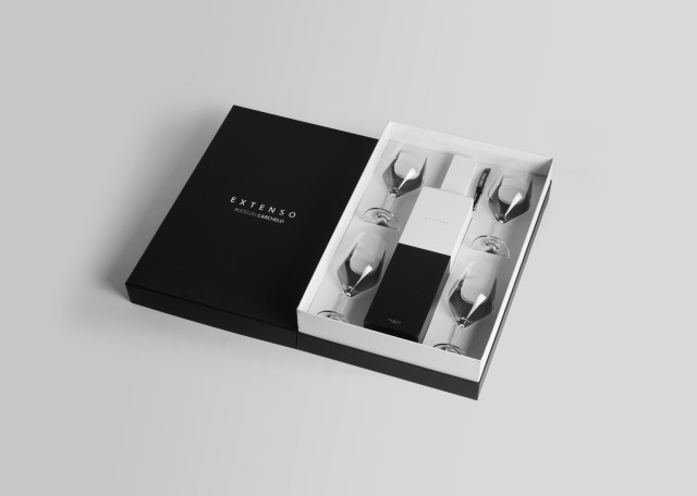 Extender un buen momento permite detener las obligaciones que a menudo nos impiden disfrutar de la vida. Y eso es Extenso, un vino de autor que ha sido fruto de un meditado proceso de elaboración, y de diseño. Junto al diseñador Eduardo del Fraile la bodega dio forma forma a algo único, revolucionario en el mundo del vino. Un packaging que incorpora el vino en formato magnum (1,5 litros) en una botella estilo a medio camino entre Bordelesa y Rhin, fina, elegante, totalmente opaca a la luz con los colores corporativos de Carchelo, el negro y el blanco. A su vez, el vino es protegido por otra botella de madera que abrimos en dos mitades para desvelar su contenido. Todo presentado en un elegante estuche negro junto a cuatro copas serigrafiadas con el logro de la bodega. (VER VÍDEO DE EXTENSO)