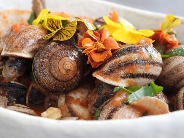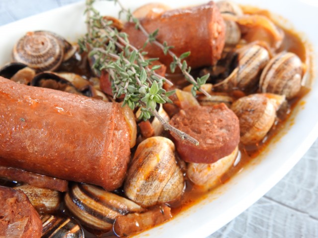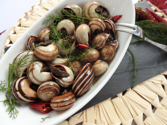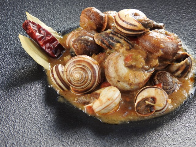 • GASTROBAR EL POPULACHO, el plato CARACOLES LAS PAVONAS (ingredientes caracoles, hinojo, comino, pimienta, cebolla, tomate y puerros).