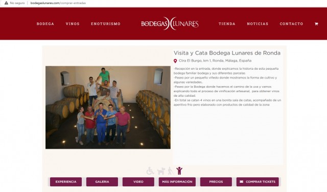 Es decir, la Bodega Lunares de Ronda (Málaga) no solo tiene un motor de venta de enoturismo en su web (clic aquí) sino en todos los Canales de venta de EnoTicket:
