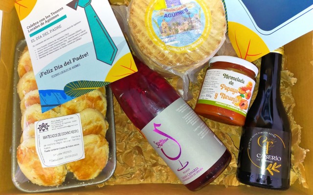 El área de Desarrollo Rural del Ayuntamiento de Agüimes y la empresa pública de Turismo Rural alcanzan un nuevo acuerdo con los productores locales para comercializar una promoción de lotes de productos locales km0 de Agüimes, para todas aquellas personas que quieran realizar un regalo especial el próximo Día del Padre.