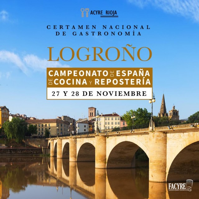 La Asociación de Cocineros y Reposteros de La Rioja (Acyre La Rioja) se complace en anunciar que, en colaboración con la Federación de Cocineros y Reposteros de España, organizará el Campeonato de España de Cocina y Repostería en la ciudad de Logroño los días 27 y 28 de noviembre.