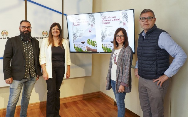 La Diputación Provincial de Valladolid ha acogido esta mañana la presentación de la XIII Edición de los Premios Calidad Cigales que se celebrará el próximo viernes 28 de abril en el Teatro Las Peñuelas de la Villa del Clarete. La Diputada de Familia e Igualdad, Raquel González, Raúl Escudero y Alicia Clavero, Gerente y Responsable de Comunicación de la Denominación Origen Cigales y el Técnico de Turismo de Cigales, Jesús Pilar Sobejano presentaron el evento.