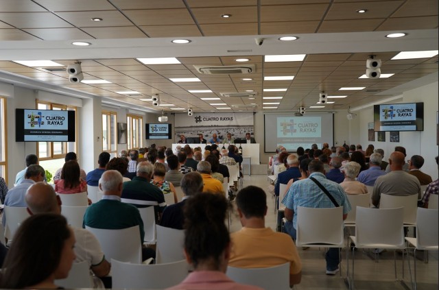 Durante la Asamblea General Ordinaria los socios de Bodega Cuatro Rayas han aprobado el informe de gestión y las cuentas del año 2022 de la bodega, cuyas cifras ratifican ventas nacionales e internacionales por cerca de 31 millones de euros, alcanzándose, así, niveles de comercialización similares a los de los años previos a la pandemia del Covid 19. Además de las cifras de ventas, los cooperativistas han repasado los principales hitos alcanzados durante el último año, entre los que destacan cerca de un centenar de premios y reconocimientos a las elaboraciones de la bodega, los avances en la aplicación del Plan de Igualdad de la bodega, la obtención de la certificación ISO 14001 en materia de sostenibilidad o la culminación del proyecto de i+D+I 'Cuatro Rayas LongVerdejo'.