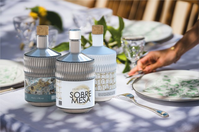 "SOBREMESA" es una botella pensada para llevar en su interior licor de crema de orujo, un producto que hace que el final de una comida sea uno de los momentos favoritos para los comensales. Su forma dividida en dos mitades -con dos texturas diferentes- hace alusión a la mezcla de los dos ingredientes de este licor: el orujo y la leche. Y su etiqueta evoca las manchas de las bebidas en el mantel, tras una sobremesa, que son sinónimo de haber pasado un buen momento. Un trabajo valorado por su desarrollo global y el original concepto.