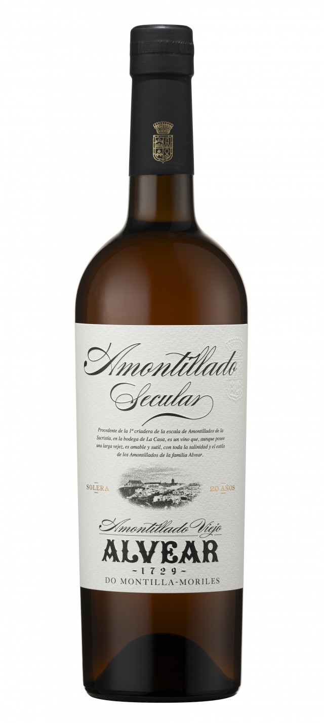 Amontillado secular es un vino muy singular, ya que, combinada la crianza bajo velo de flor, propia del Fino, con un período posterior en el que el velo de flor desaparece y el vino se expone a la oxidación. Elaborado con uva Pedro Ximénez, esa fusión de crianzas hace de los Amontillados vinos extraordinariamente complejos e interesantes.
