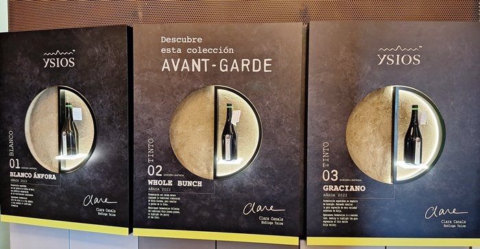 Por lo de "casi" hacía referencia a que no son todos los que Bodegas Ysios elabora, estos son algunos más, pero si me quedé con la ganas de probar unas primicias, algo que me permito anunciar, y son tres nuevas elaboraciones que en breve se presentarán. De ellas únicamente se han elaborado unas escasas trescientas botellas de cada referencia. Blanco Ánfora 2022, un vino de la variedad Viura elaborado en tinaja, Whole Bunch 2022, un maceración carbónica al más puro estilo tradicional de estos tintos jóvenes de la Rioja Alavesa, y Graciano 2022, un monovarietal de esta variedad tan complicada pero que bien trabajada da como resultante vinos muy interesantes. Tres vinos que espero tener la ocasión de poder catarlos por ser algo diferentes y con una cuidada elaboración